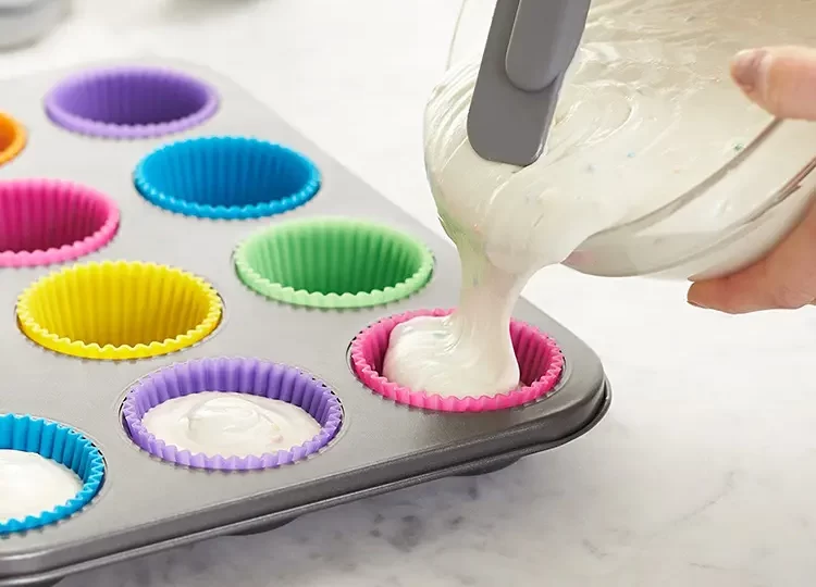Each silicon baking muffin cup is made of 100% food-grade silicone that complies with both FDA and European LFGB standards. They are free from BPA, odor, leaking dyes, and chemical coatings. Making them an eco-friendly premium silicone pinch approved product. The color of the cups does not fade, and they are heavy-duty, weighing 10g/pc, which is stronger than the regular 6g/pc. The shape of the cake remains intact after baking, with no deformation. Resuable for Long-Term Use, money saving and environment friendly than paper cupcake liners.
